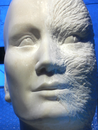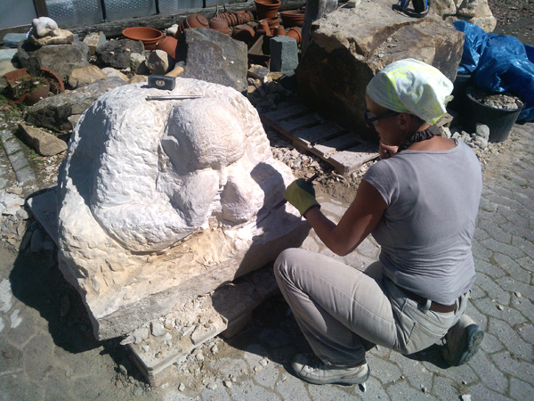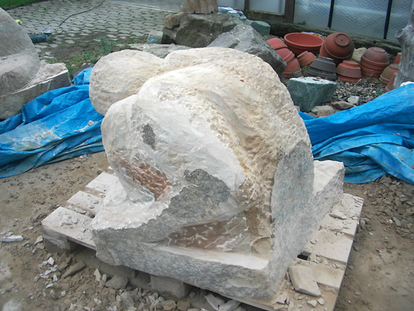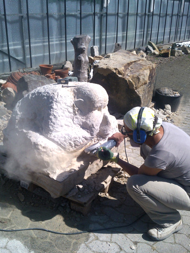 - Rekonstruktion Marmor Hand an Jesus Statue2014, Das beschädigte Jesus-Denkmal