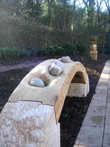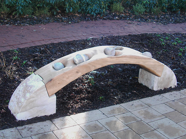- brückeAußenskulptur, Sandstein/Eiche/Flusskiesel, HBT 50-190-30